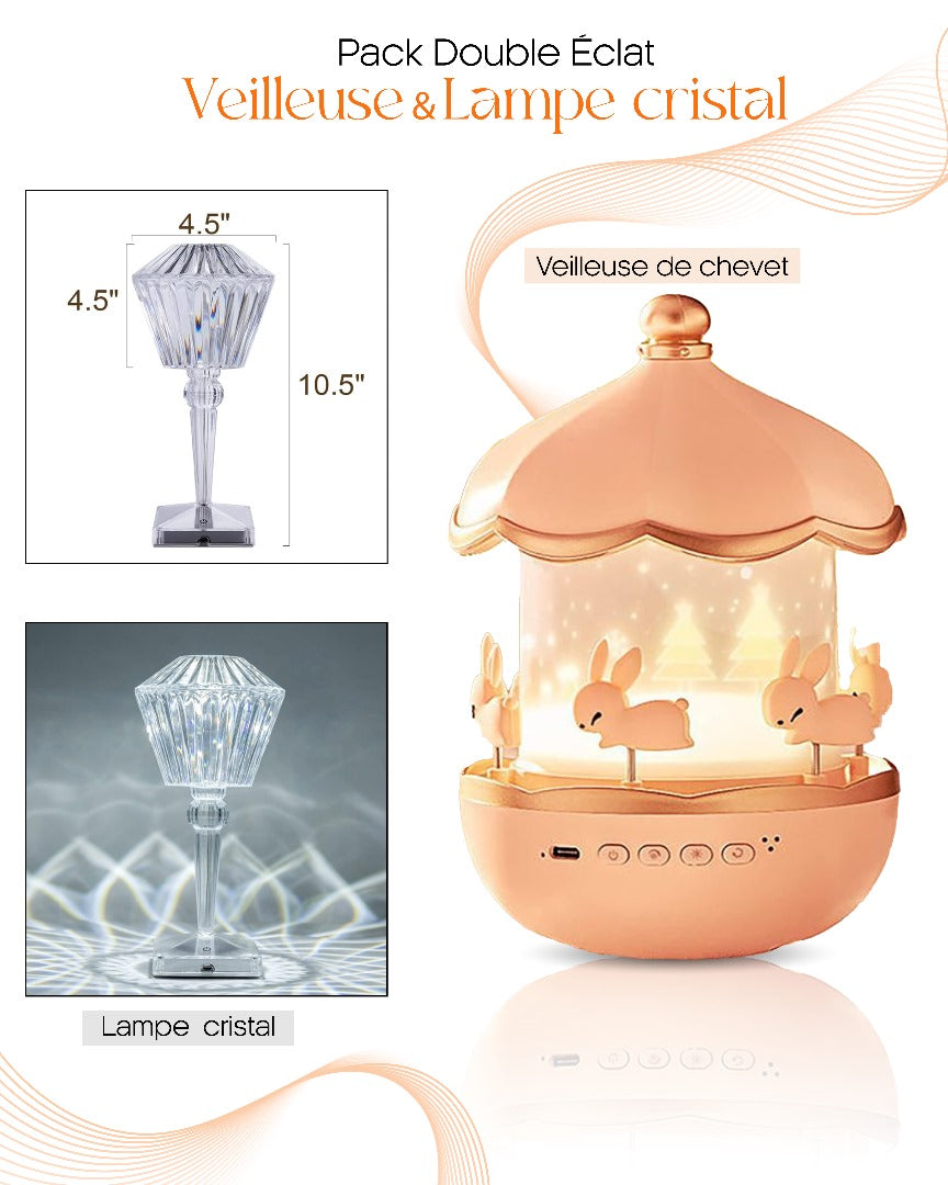 Pack Duo Étoilé : veilleuse + lampe cristal