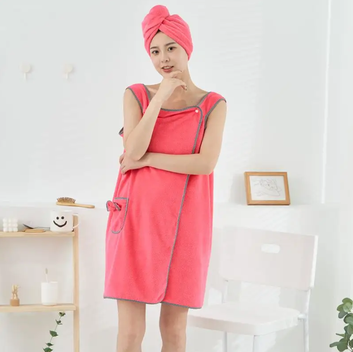 Toutes les femmes l'adore 😍😍, fini les serviettes qui tombent et qui vous exposent. Cette serviette super absorbante en forme de robe s'adapte à tout les situations pour vous !!